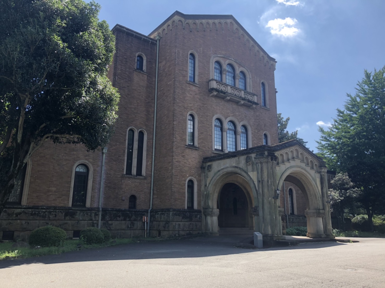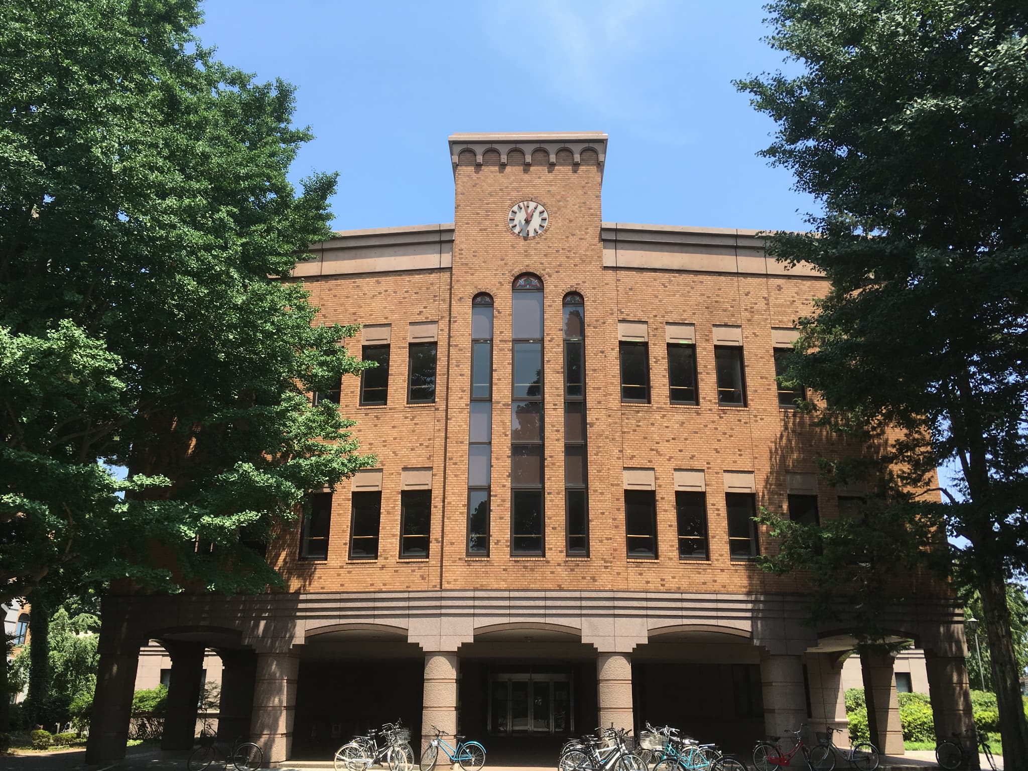 西正門から入って左側、兼松講堂と向かい合っている建物が本館です。学長がいる法人本部棟に間違えて入らないように! また、正面玄関からは入れないので、建物の両脇にある出入り口から入るようにしてください。