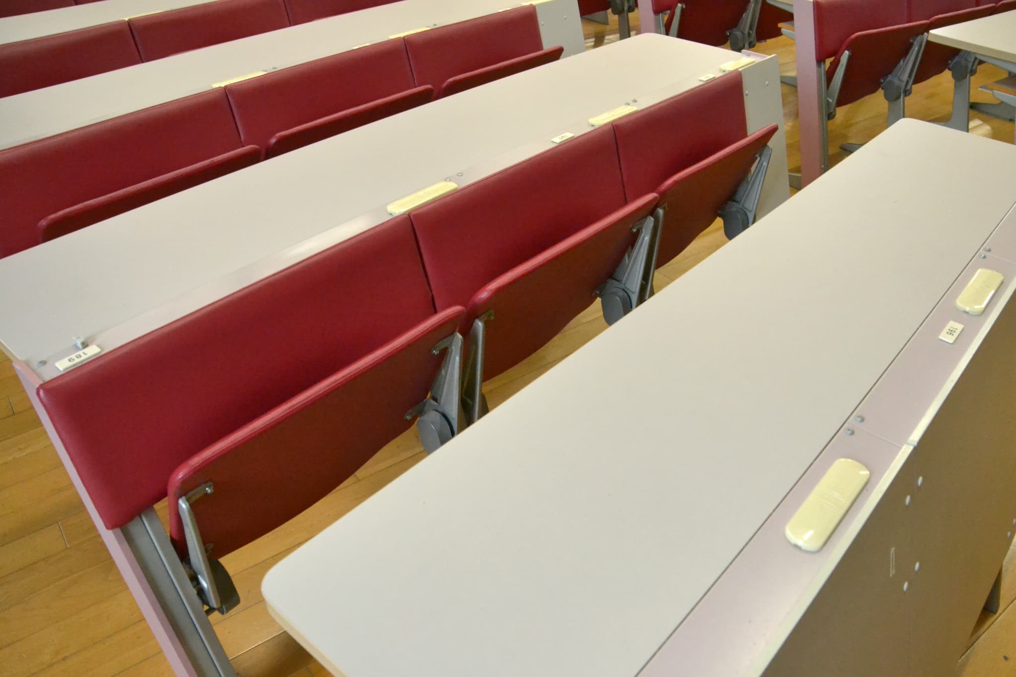教室によってはかなり固い固定椅子なので、 座布団を持って行くと良いでしょう。 椅子が連結されている教室では、隣の人が消しゴムを使うと椅子が揺れることがあります。集中力を保てるよう注意しましょう。
