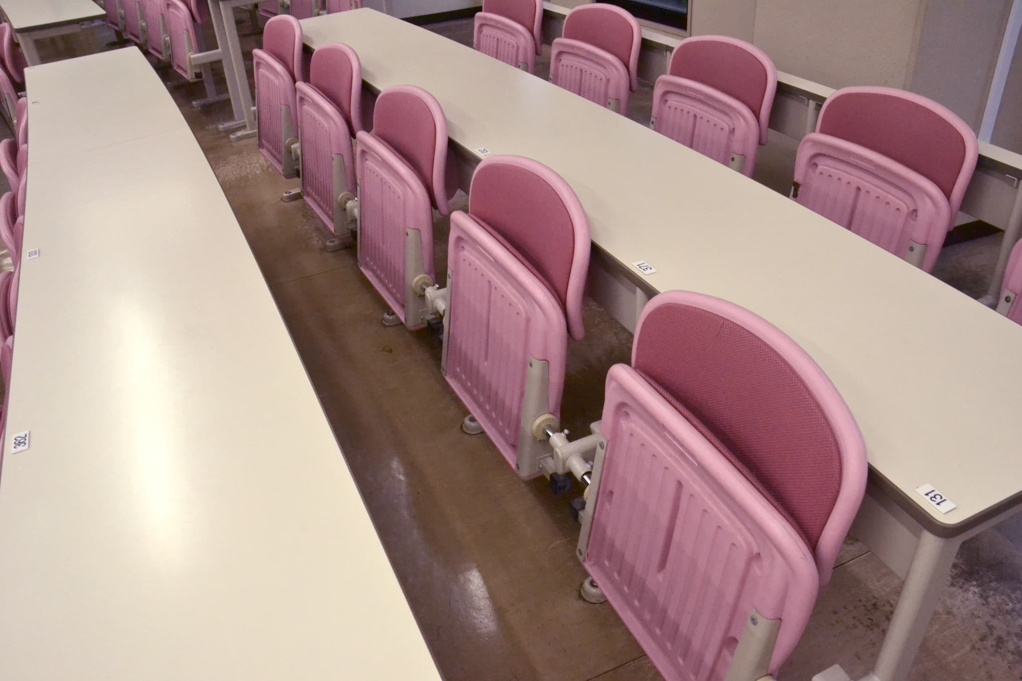 東1号館の試験会場は、固定式の椅子とそうでないプラスチックの椅子の2種類となっています。前者の椅子は、ちょっと前に重心をずらすと前に倒れるタイプで、後者の椅子は、プラスチックなのでだいぶ固いです。 固い椅子が嫌いな人は、 座布団や膝掛けなどお尻の下に敷けるものを持って行くといいかもしれません。