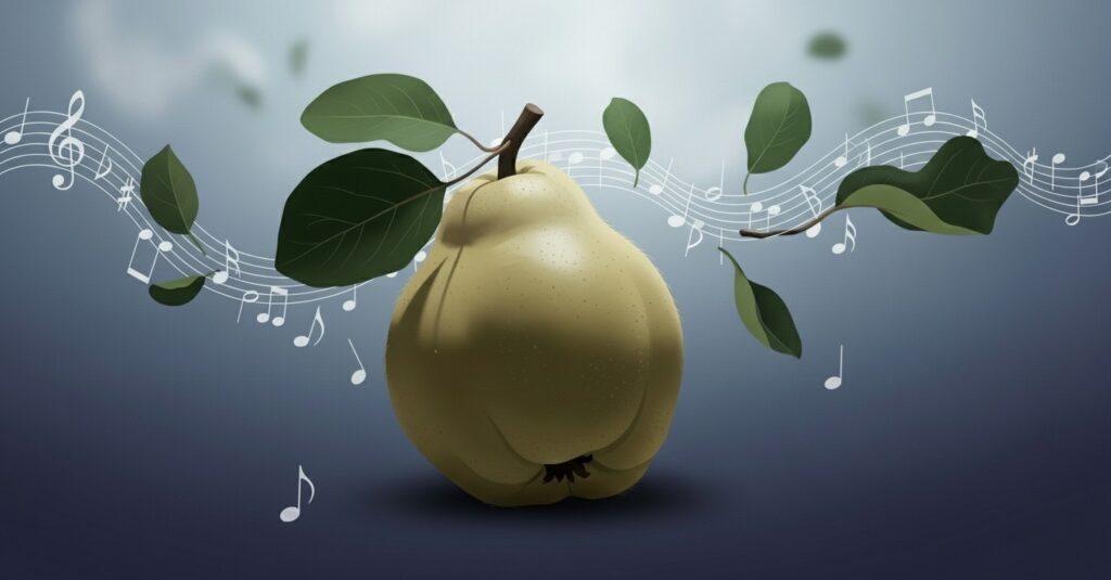 まるメロとは、中央アジアが原産の梨のようなフルーツの名前です。生食には向かず、主にジャムやシロップ漬けなどに利用されるそうです。一人なので少し心細いですが、一生懸命歌います!