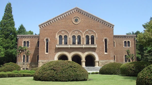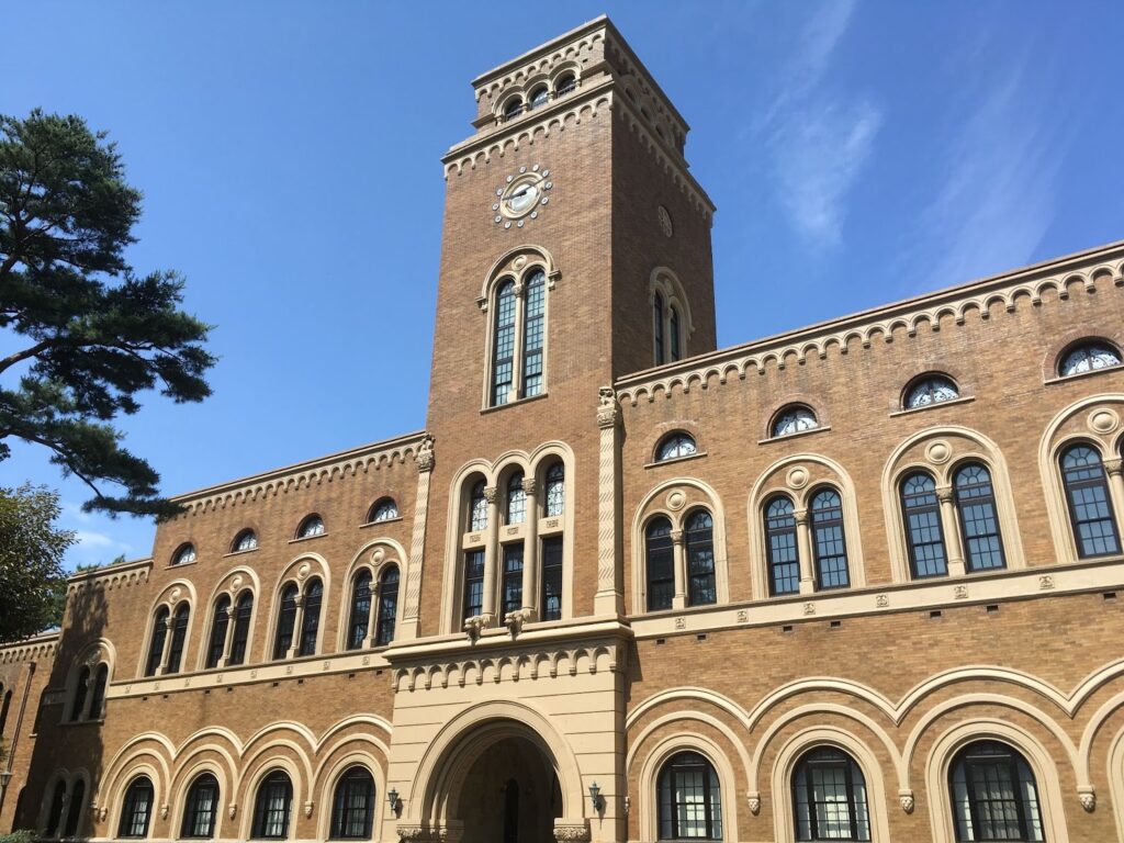 こちらは1927年に伊東忠太という建築家によって建てられた講堂であり、ロマネスク様式という建築様式を採用しています。(入口や窓の半円アーチがロマネスク様式の特徴です!)