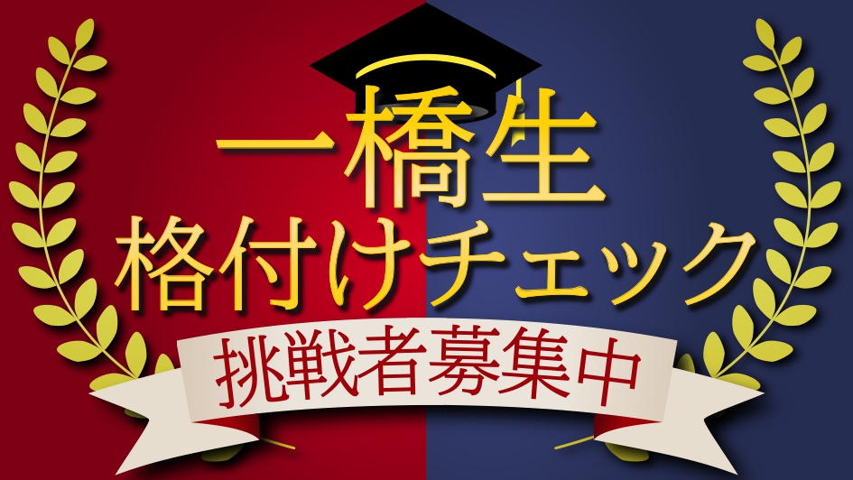 知の殿堂、一橋大学。しかし、そこに通うもの全てが真の知を持つと言えるのか?選ばれし学生たちが挑む一橋生格付けチェック。もちろん一橋生なら “正解できて当たり前” だが——間違えれば「二橋生」「三橋生」「受験生」とランクダウン。最後には「通う価値なし」となり、ステージ上から消えてしまう..... 果たして君たちは一橋生を名乗り続けることができるのか⁉ |