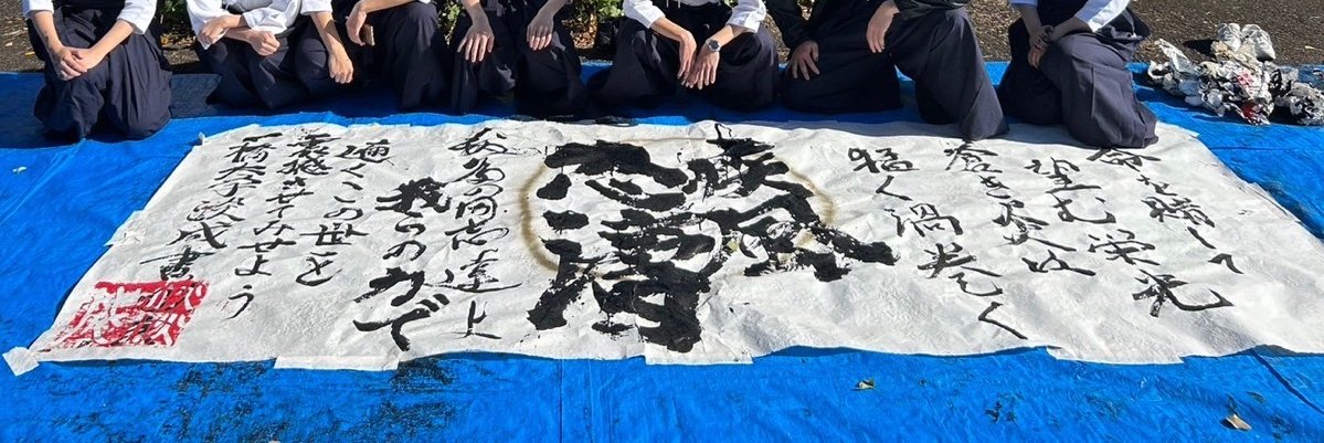 大きな紙に音楽に合わせて全力で文字を書きます!