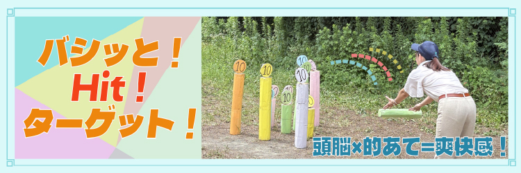 的を倒すために棒やラグビーボールを投げても良し、サッカーボールを蹴っても良し!1人からでも楽しめます。あなたも高得点を獲得して目指せランクイン!