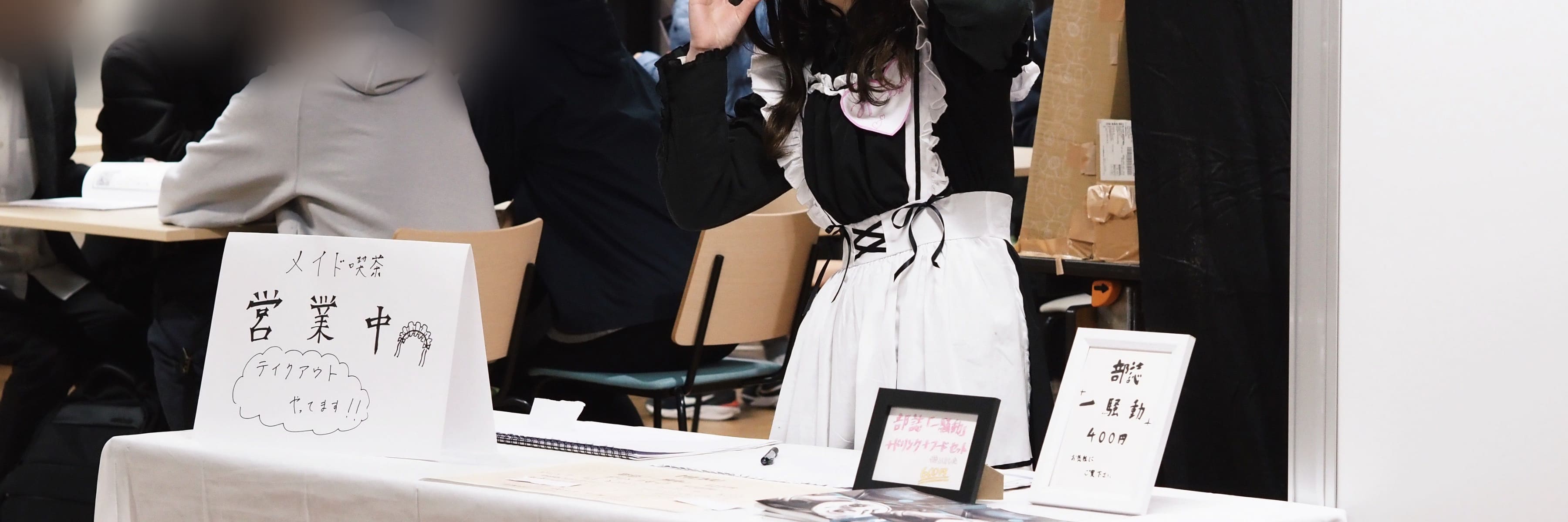 創作の世界を味わえる喫茶企画です!スタッフは統一感ある衣装でおもてなし。部員が制作した映像作品の上映や、部誌・オリジナルグッズの販売を行います!