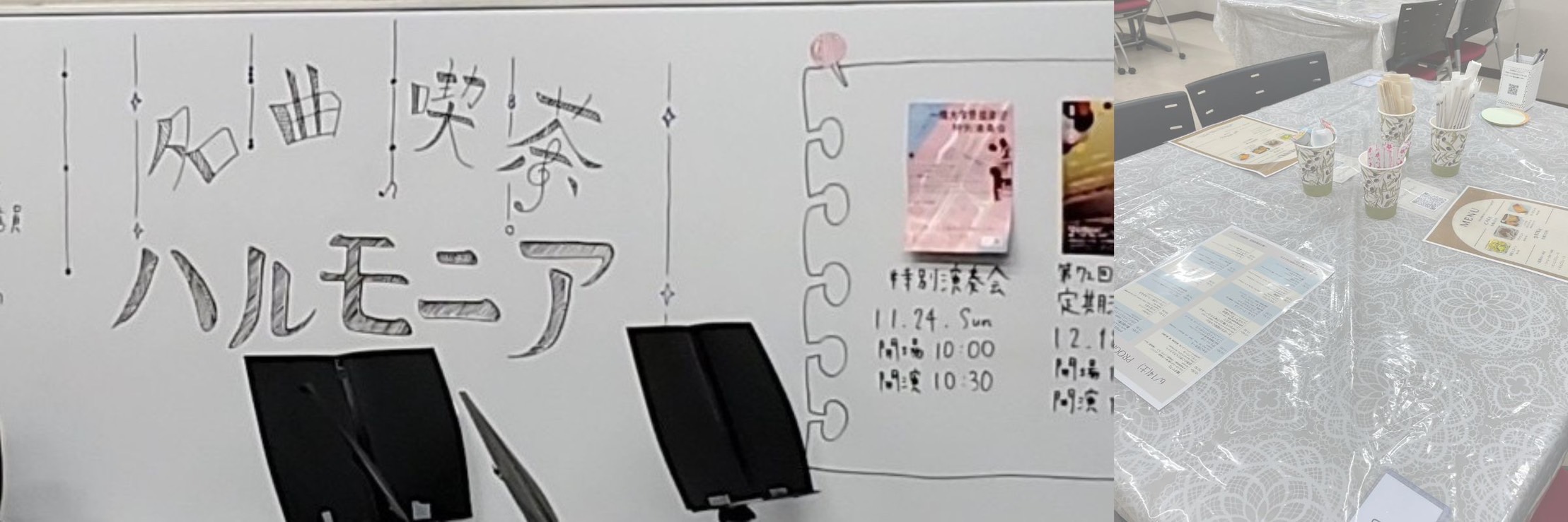 当団の団員による生演奏を聴きながら、毎年お客様からご好評をいただいているケーキやドリンクをお楽しみいただけます。心地よいクラシックの名曲から迫力あるポップス、誰もが知る映画音楽まで、幅広いジャンルの曲を団員が心を込めて演奏させていただきます。