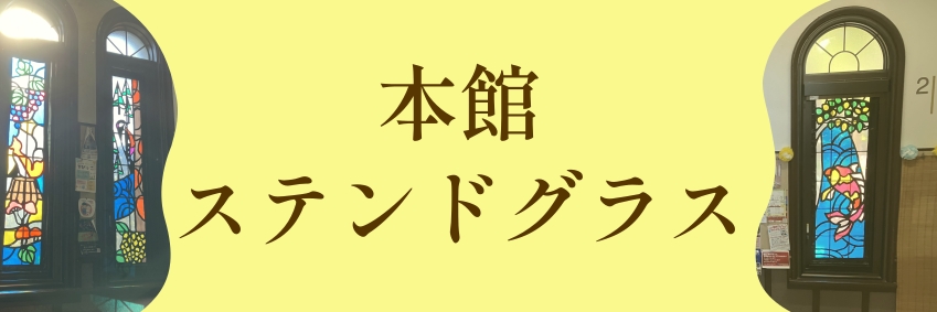 セロハンで制作したステンドグラス装飾が力強い動物を描き、和の雰囲気とともに本館の窓を美しく彩ります。